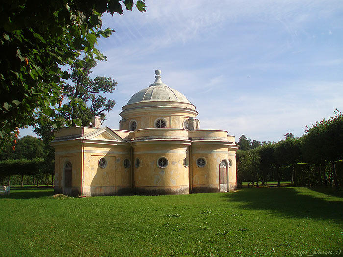 Это садовый павильон, обязательный атрибут регулярных парков XVIII века, был построен в 1762 году по проекту архитектора Ф. Б. Растрелли. Строительство началось 1755-1756 годах по приказу